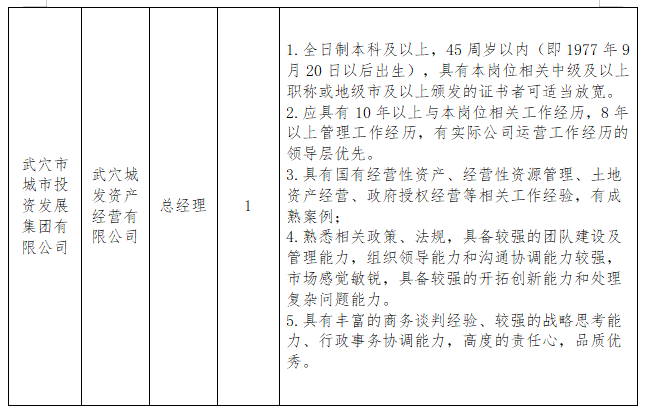 武穴市城投集團(tuán)公開招聘職業(yè)經(jīng)理人公告